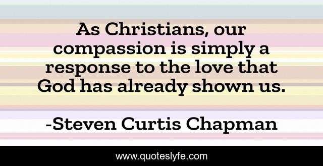 This page presents the quote "As Christians, our compassion is simply a response to the love that God has already shown us.". Author of this quote is Steven Curtis Chapman. This quote is about compassion, god, love, affection,.