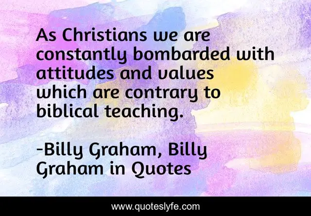 This page presents the quote "As Christians we are constantly bombarded with attitudes and values which are contrary to biblical teaching.". Author of this quote is Billy Graham, Billy Graham in Quotes. This quote is about billy-graham, christianity,.
