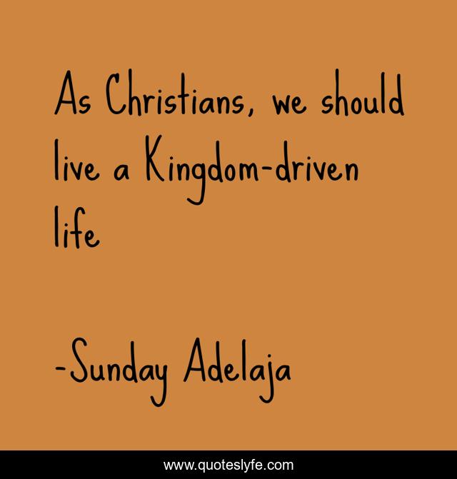 This page presents the quote "As Christians, we should live a Kingdom-driven life". Author of this quote is Sunday Adelaja. This quote is about life, blessing, finance, money, work, christianity, job, purpose, kingdom-driven-life,.