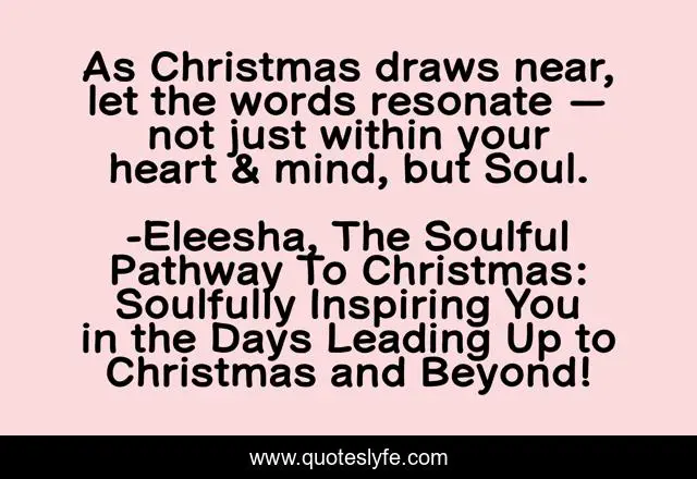 "Eleesha, The Soulful Pathway To Christmas: Soulfully Inspiring You in the Days Leading Up to Christmas and Beyond! Quotes." Quoteslyfe.com, 2025. Mon. 08 Dec. 2025. <https://www.quoteslyfe.com/quote/As-Christmas-draws-near-let-the-words-205058>.