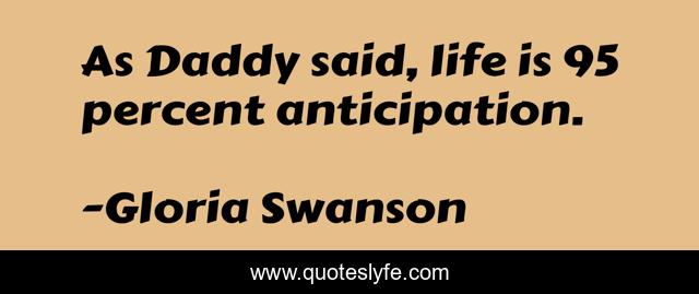 This page presents the quote "As Daddy said, life is 95 percent anticipation.". Author of this quote is Gloria Swanson. This quote is about life, anticipation, said,.