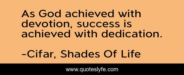 This page presents the quote "As God achieved with devotion, success is achieved with dedication.". Author of this quote is Cifar, Shades Of Life. This quote is about god, colors, shades-of-life, success,.