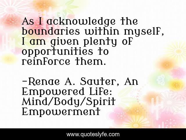 "Renae A. Sauter, An Empowered Life: Mind/Body/Spirit Empowerment Quotes." Quoteslyfe.com, 2026. Thu. 19 Mar. 2026. <https://www.quoteslyfe.com/quote/As-I-acknowledge-the-boundaries-within-myself-77776>.