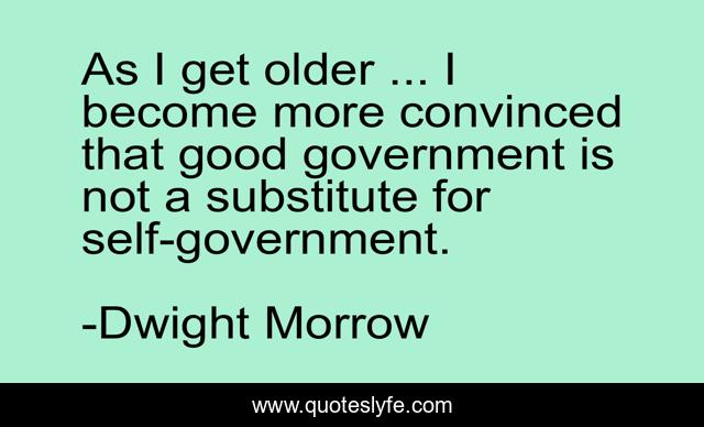 This page presents the quote "As I get older ... I become more convinced that good government is not a substitute for self-government.". Author of this quote is Dwight Morrow. This quote is about rule, government,.