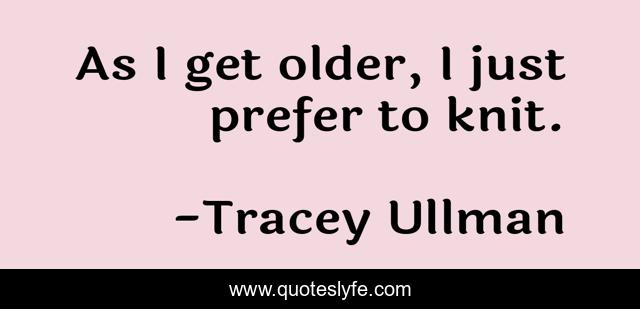 This page presents the quote "As I get older, I just prefer to knit.". Author of this quote is Tracey Ullman. This quote is about knit, just, older,.