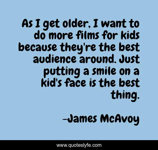 This page presents the quote "As I get older, I want to do more films for kids because they're the best audience around. Just putting a smile on a kid's face is the best thing.". Author of this quote is James McAvoy. This quote is about best, face,.