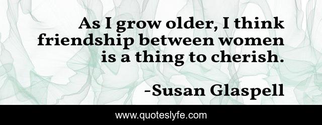 This page presents the quote "As I grow older, I think friendship between women is a thing to cherish.". Author of this quote is Susan Glaspell. This quote is about women, think, grow,.