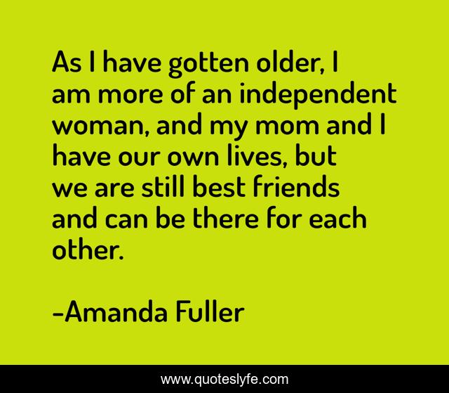 This page presents the quote "As I have gotten older, I am more of an independent woman, and my mom and I have our own lives, but we are still best friends and can be there for each other.". Author of this quote is Amanda Fuller. This quote is about friends, best,.