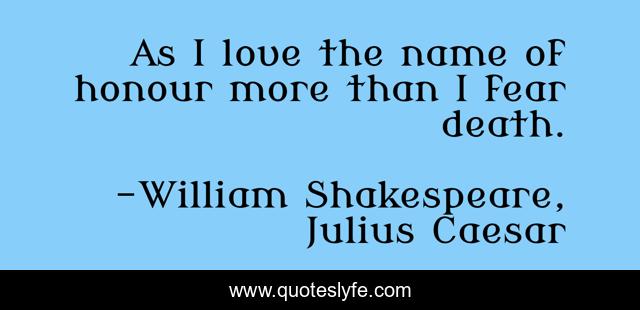 This page presents the quote "As I love the name of honour more than I fear death.". Author of this quote is William Shakespeare, Julius Caesar. This quote is about julius, honour, caesar, honor,.
