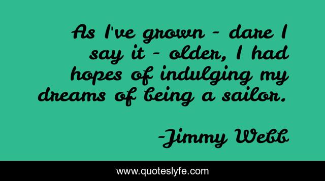 This page presents the quote "As I've grown - dare I say it - older, I had hopes of indulging my dreams of being a sailor.". Author of this quote is Jimmy Webb. This quote is about sailor, dare,.