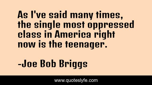 This page presents the quote "As I've said many times, the single most oppressed class in America right now is the teenager.". Author of this quote is Joe Bob Briggs. This quote is about single, america, said,.