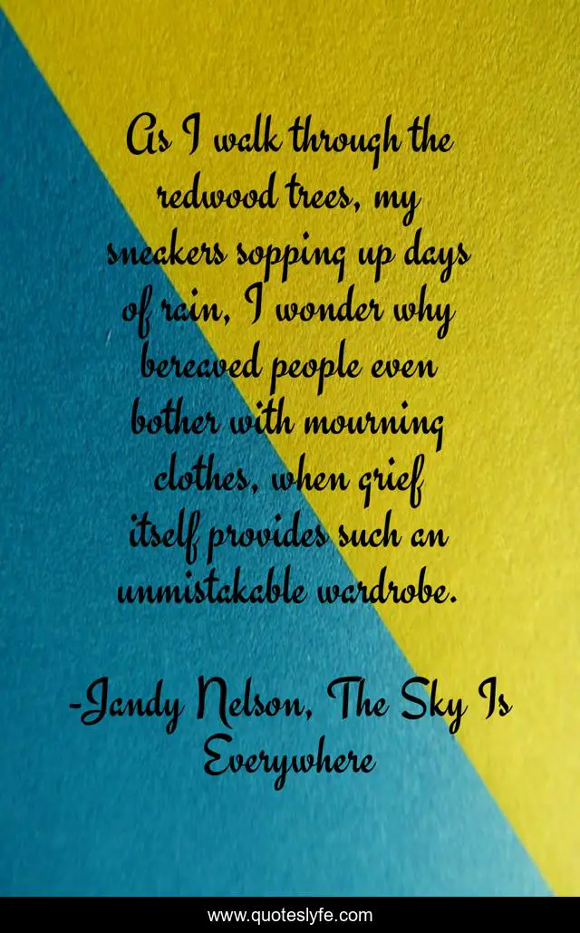 "Jandy Nelson, The Sky Is Everywhere Quotes." Quoteslyfe.com, 2025. Fri. 05 Dec. 2025. <https://www.quoteslyfe.com/quote/As-I-walk-through-the-redwood-trees-123786>.
