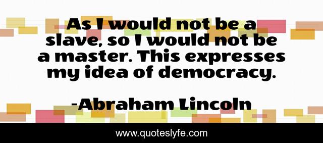 This page presents the quote "As I would not be a slave, so I would not be a master. This expresses my idea of democracy.". Author of this quote is Abraham Lincoln. This quote is about equality, slavery, democracy,.