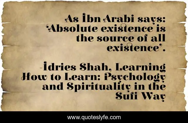 "Idries Shah, Learning How to Learn: Psychology and Spirituality in the Sufi Way Quotes." Quoteslyfe.com, 2025. Mon. 08 Dec. 2025. <https://www.quoteslyfe.com/quote/As-Ibn-Arabi-says-Absolute-existence-is-203427>.
