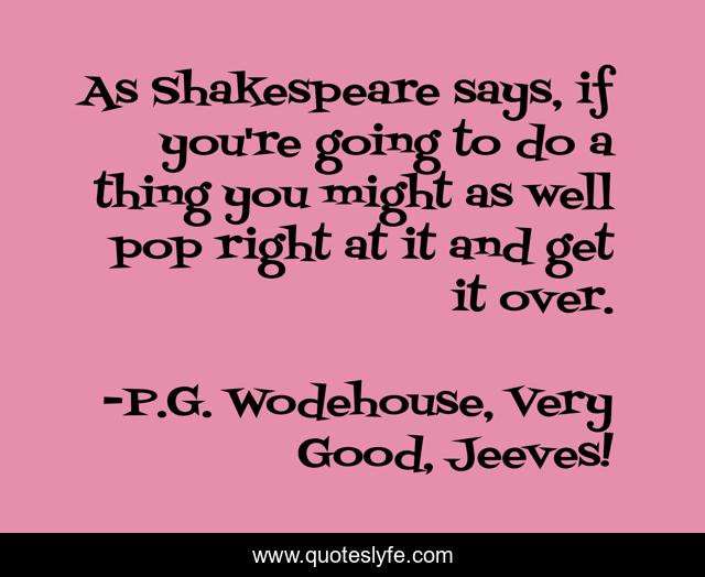 This page presents the quote "As Shakespeare says, if you're going to do a thing you might as well pop right at it and get it over.". Author of this quote is P.G. Wodehouse, Very Good, Jeeves!. This quote is about humor, shakespeare,.