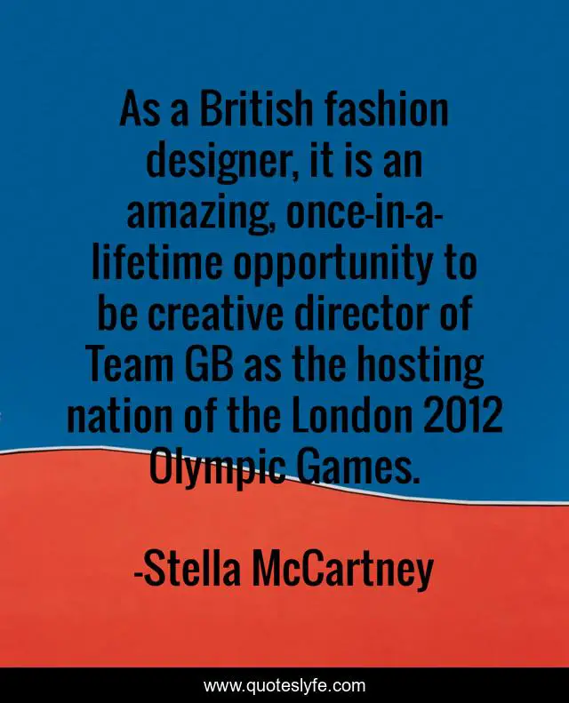 This page presents the quote "As a British fashion designer, it is an amazing, once-in-a-lifetime opportunity to be creative director of Team GB as the hosting nation of the London 2012 Olympic Games.". Author of this quote is Stella McCartney. This quote is about team, opportunity, creative,.