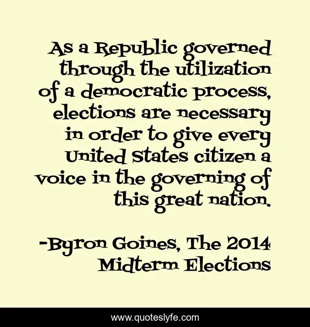 "Byron Goines, The 2014 Midterm Elections Quotes." Quoteslyfe.com, 2025. Fri. 05 Dec. 2025. <https://www.quoteslyfe.com/quote/As-a-Republic-governed-through-the-utilization-200211>.