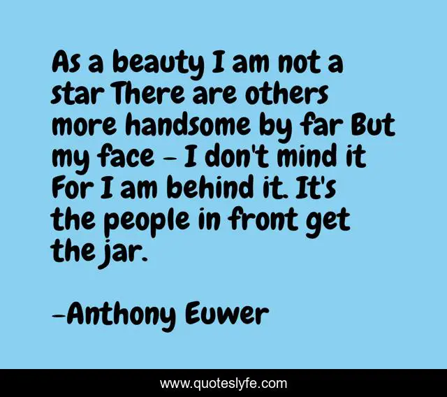 This page presents the quote "As a beauty I am not a star There are others more handsome by far But my face - I don't mind it For I am behind it. It's the people in front get the jar.". Author of this quote is Anthony Euwer. .