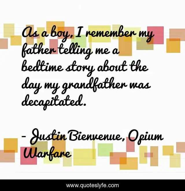 "Justin Bienvenue, Opium Warfare Quotes." Quoteslyfe.com, 2025. Fri. 05 Dec. 2025. <https://www.quoteslyfe.com/quote/As-a-boy-I-remember-my-father-164414>.