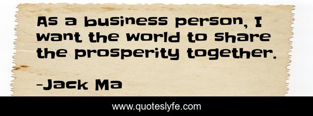 This page presents the quote "As a business person, I want the world to share the prosperity together.". Author of this quote is Jack Ma. This quote is about world, together,.