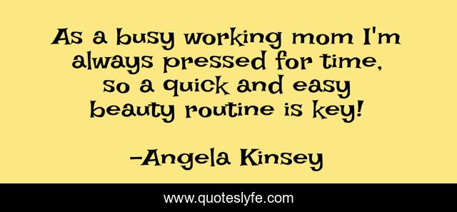 This page presents the quote "As a busy working mom I'm always pressed for time, so a quick and easy beauty routine is key!". Author of this quote is Angela Kinsey. This quote is about busy, mom, time,.