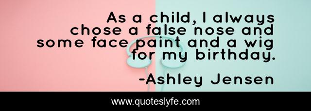 This page presents the quote "As a child, I always chose a false nose and some face paint and a wig for my birthday.". Author of this quote is Ashley Jensen. This quote is about paint, child, face,.