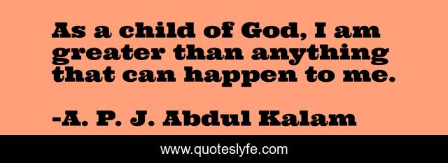 This page presents the quote "As a child of God, I am greater than anything that can happen to me.". Author of this quote is A. P. J. Abdul Kalam. This quote is about great, child,.