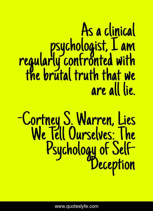 "Cortney S. Warren, Lies We Tell Ourselves: The Psychology of Self-Deception Quotes." Quoteslyfe.com, 2025. Sat. 06 Dec. 2025. <https://www.quoteslyfe.com/quote/As-a-clinical-psychologist-I-am-regularly-238723>.