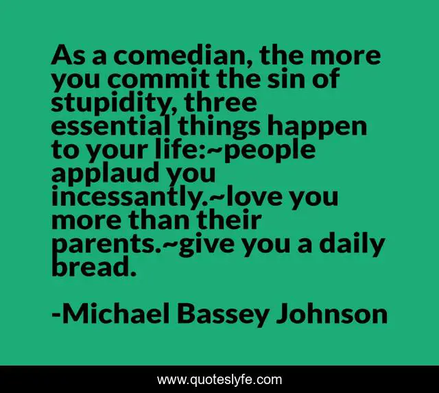 As a comedian, the more you commit the sin of stupidity, three essential things happen to your life:~people applaud you incessantly.~love you more than their parents.~give you a daily bread.