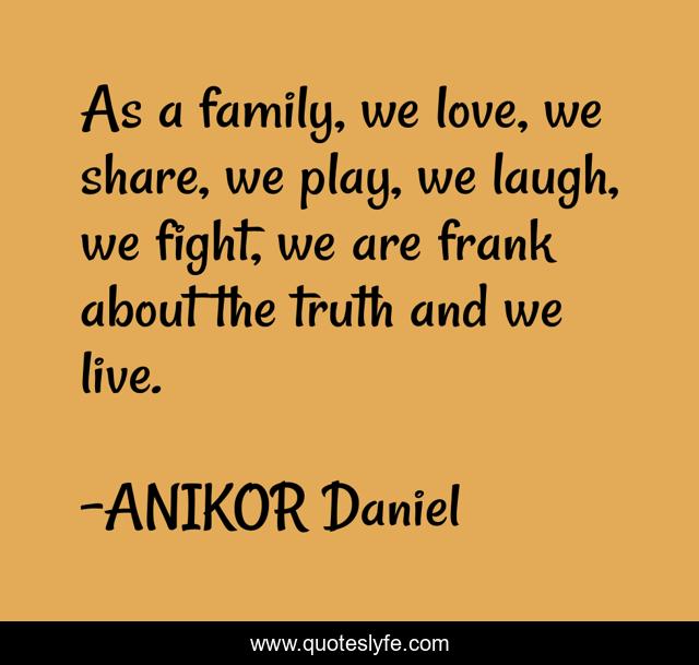 This page presents the quote "As a family, we love, we share, we play, we laugh, we fight, we are frank about the truth and we live.". Author of this quote is ANIKOR Daniel. .