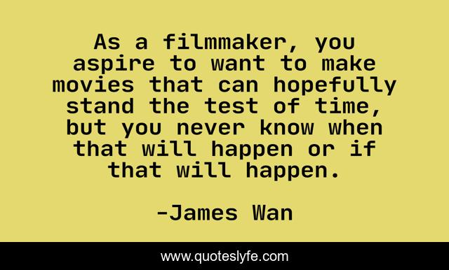 This page presents the quote "As a filmmaker, you aspire to want to make movies that can hopefully stand the test of time, but you never know when that will happen or if that will happen.". Author of this quote is James Wan. .