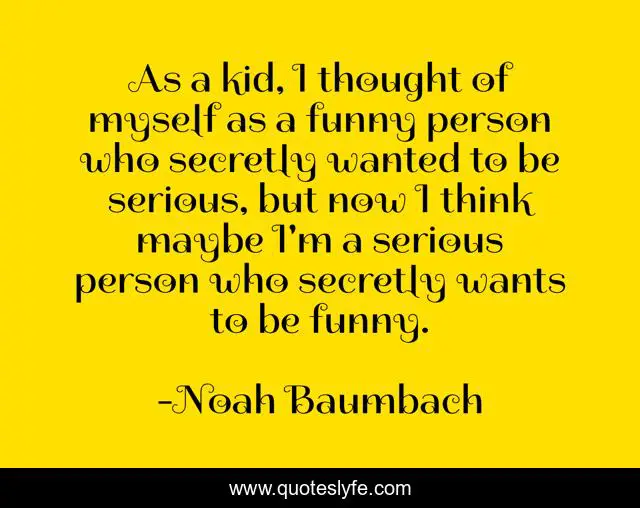 This page presents the quote "As a kid, I thought of myself as a funny person who secretly wanted to be serious, but now I think maybe I'm a serious person who secretly wants to be funny.". Author of this quote is Noah Baumbach. This quote is about thought, myself, think,.