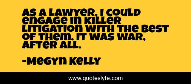 This page presents the quote "As a lawyer, I could engage in killer litigation with the best of them. It was war, after all.". Author of this quote is Megyn Kelly. This quote is about litigation, best, lawyer,.