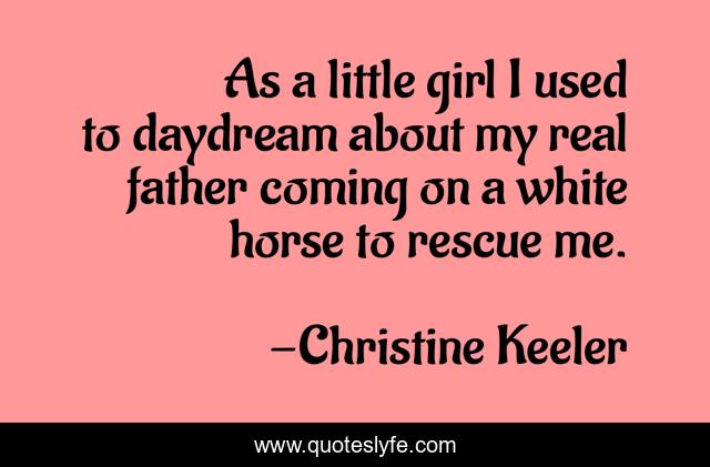 This page presents the quote "As a little girl I used to daydream about my real father coming on a white horse to rescue me.". Author of this quote is Christine Keeler. This quote is about girl, father, horse,.