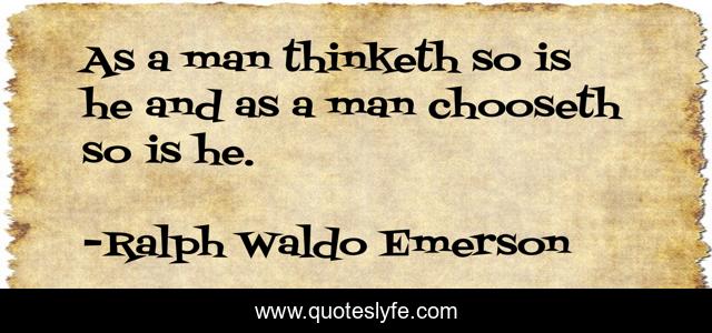 This page presents the quote "As a man thinketh so is he and as a man chooseth so is he.". Author of this quote is Ralph Waldo Emerson. .