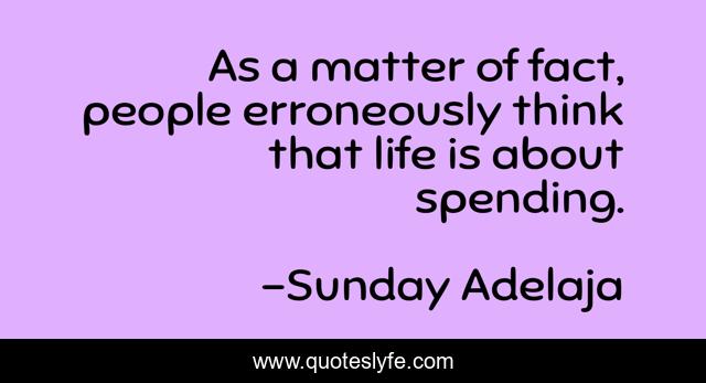 This page presents the quote "As a matter of fact, people erroneously think that life is about spending.". Author of this quote is Sunday Adelaja. This quote is about life, erroneously, people, spending, matter, as, think, fact,.