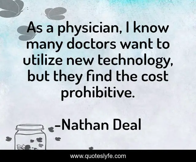 This page presents the quote "As a physician, I know many doctors want to utilize new technology, but they find the cost prohibitive.". Author of this quote is Nathan Deal. .