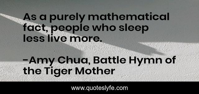 This page presents the quote "As a purely mathematical fact, people who sleep less live more.". Author of this quote is Amy Chua, Battle Hymn of the Tiger Mother. .