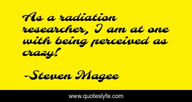 This page presents the quote "As a radiation researcher, I am at one with being perceived as crazy!". Author of this quote is Steven Magee. This quote is about crazy, being, radiation, perceived, one, researcher,.