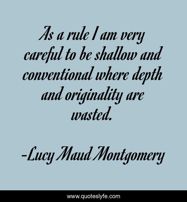 This page presents the quote "As a rule I am very careful to be shallow and conventional where depth and originality are wasted.". Author of this quote is Lucy Maud Montgomery. .