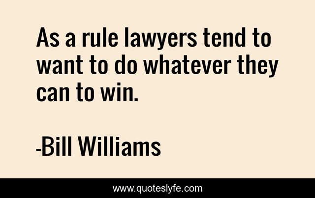 This page presents the quote "As a rule lawyers tend to want to do whatever they can to win.". Author of this quote is Bill Williams. This quote is about win, lawyers,.