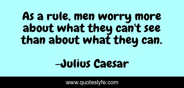 This page presents the quote "As a rule, men worry more about what they can't see than about what they can.". Author of this quote is Julius Caesar. This quote is about see, worry,.