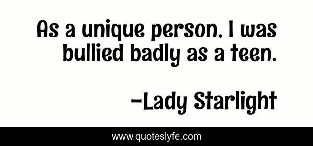 "Lady Starlight Quotes." Quoteslyfe.com, 2025. Fri. 05 Dec. 2025. <https://www.quoteslyfe.com/quote/As-a-unique-person-I-was-bullied-295910>.