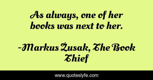 This page presents the quote "As always, one of her books was next to her.". Author of this quote is Markus Zusak, The Book Thief. This quote is about books, reading,.