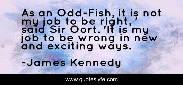 This page presents the quote "As an Odd-Fish, it is not my job to be right, ' said Sir Oort. 'It is my job to be wrong in new and exciting ways.". Author of this quote is James Kennedy. This quote is about humor, success, failure, inspirational, enthusiasm, odd,.