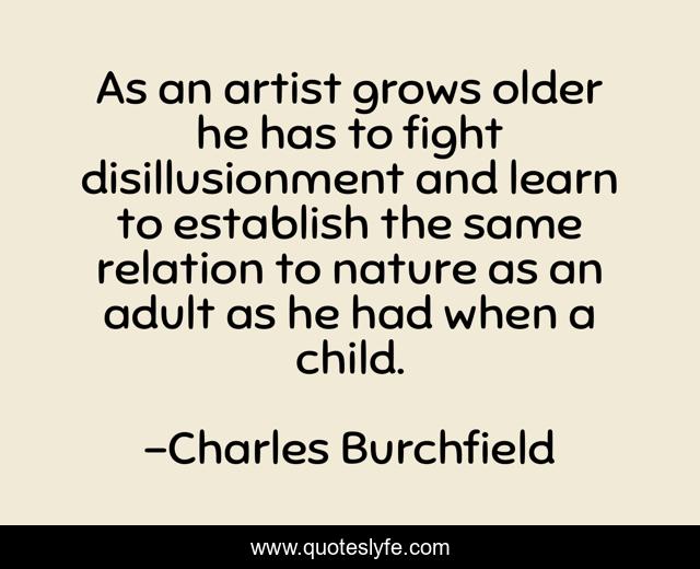 This page presents the quote "As an artist grows older he has to fight disillusionment and learn to establish the same relation to nature as an adult as he had when a child.". Author of this quote is Charles Burchfield. This quote is about art, artist,.