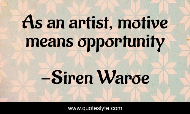 "Siren Waroe Quotes." Quoteslyfe.com, 2025. Sun. 07 Dec. 2025. <https://www.quoteslyfe.com/quote/As-an-artist-motive-means-opportunity-108482>.