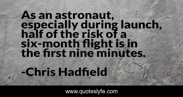 This page presents the quote "As an astronaut, especially during launch, half of the risk of a six-month flight is in the first nine minutes.". Author of this quote is Chris Hadfield. This quote is about first, risk, launch,.