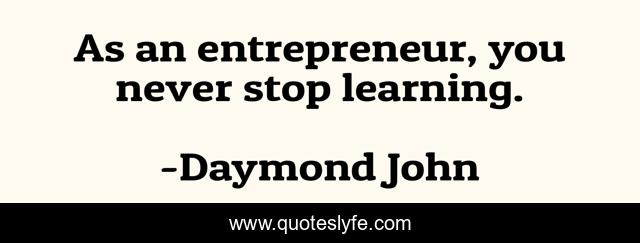 "Daymond John Quotes." Quoteslyfe.com, 2025. Sat. 06 Dec. 2025. <https://www.quoteslyfe.com/quote/As-an-entrepreneur-you-never-stop-learning-300279>.