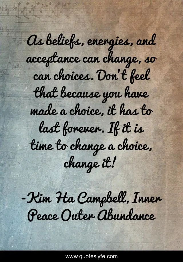"Kim Ha Campbell, Inner Peace Outer Abundance Quotes." Quoteslyfe.com, 2025. Fri. 05 Dec. 2025. <https://www.quoteslyfe.com/quote/As-beliefs-energies-and-acceptance-can-change-174700>.